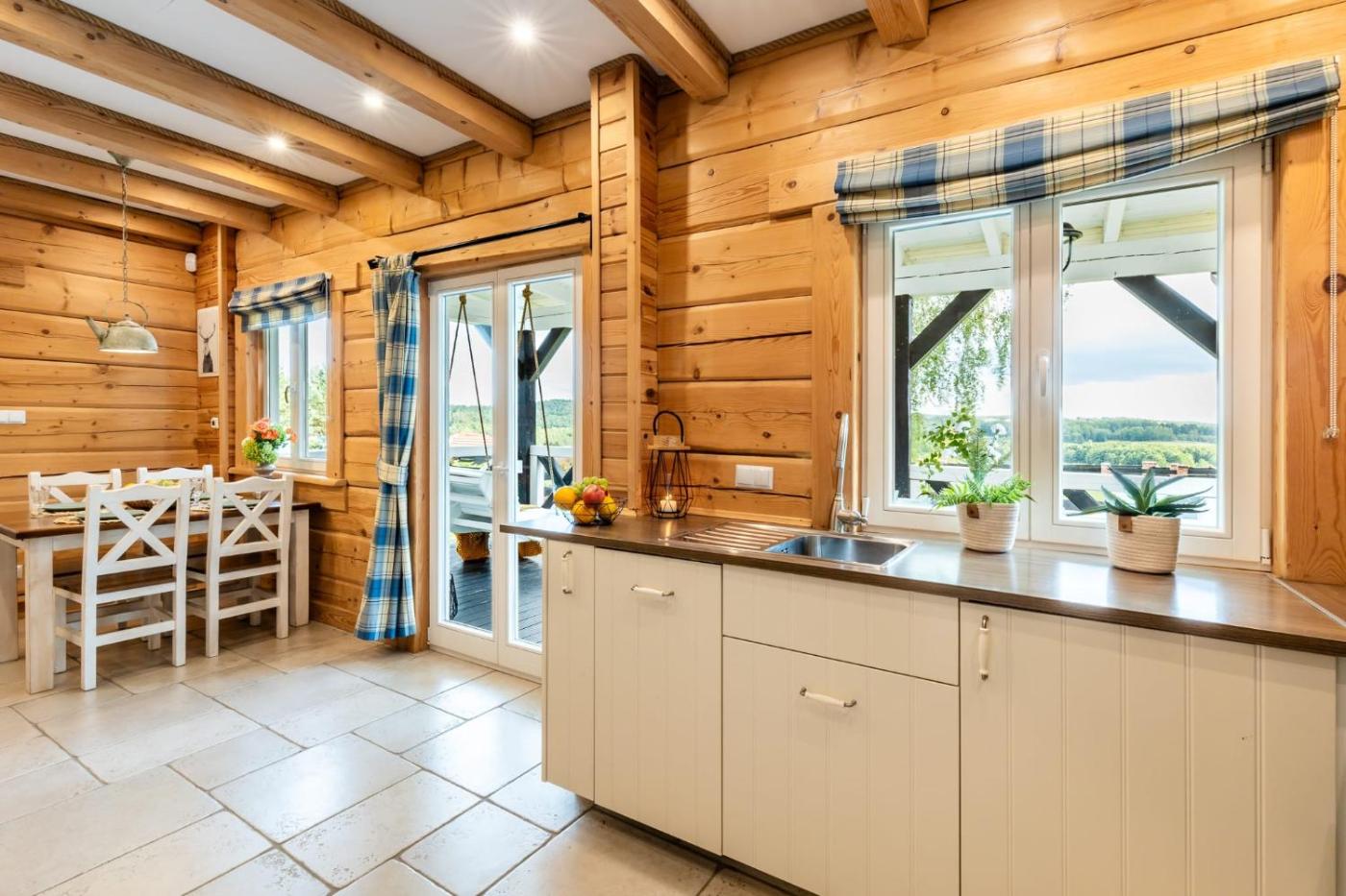 Domek rodzinny. The sauna and fireplace are the special features of this chalet. Boasting a private entrance, this spacious chalet also features 1 living room, 2 separate bedrooms and 1 bathroom with a walk-in shower. Guests will find a stovetop, a refrigerator, a dishwasher and kitchenware in the well-equipped kitchen. The chalet also comes with a barbecue. Featuring a terrace with lake views, this chalet also features a washing machine and a flat-screen TV with cable channels. The unit has 4 beds. Domek - 6 osobowy. Powierzchnia pokoju ok.: 100 mkw. ;