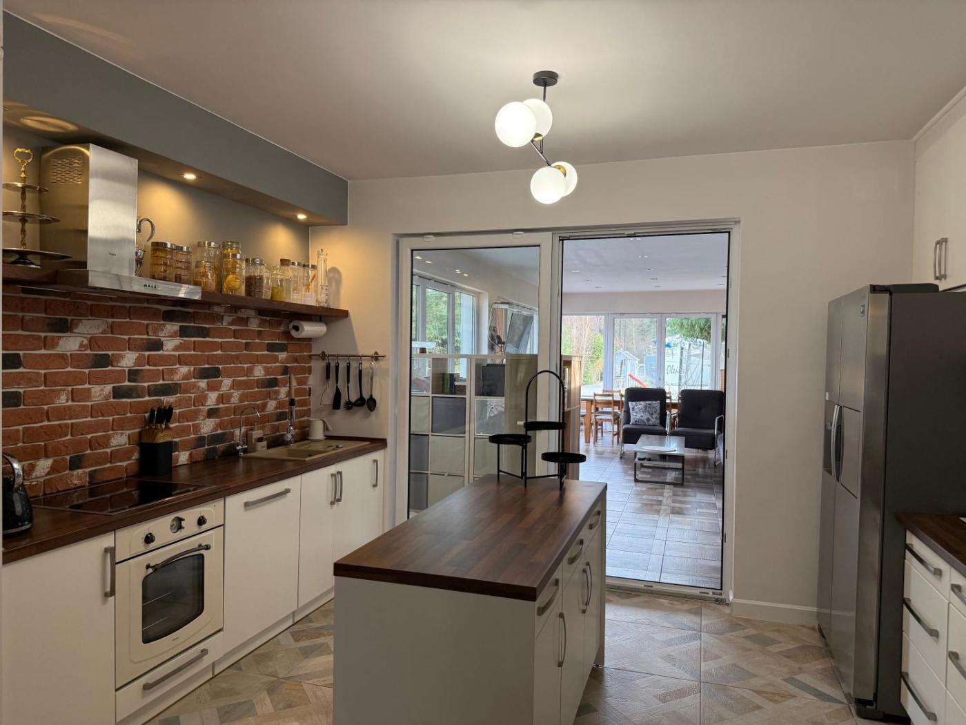 Dom z 3 sypialniami. This holiday home offers a fireplace. This spacious holiday home comprises 2 living rooms, 3 separate bedrooms and 2 bathrooms with a bath and free toiletries. Guests will find a stovetop, a refrigerator, a dishwasher and kitchenware in the well-equipped kitchen. The holiday home also provides guests with a barbecue. Featuring a terrace with garden views, this holiday home also provides a washing machine and a flat-screen TV with streaming services. The unit offers 7 beds. Dom wakacyjny - 12 osobowy. Powierzchnia pokoju ok.: 220 mkw.